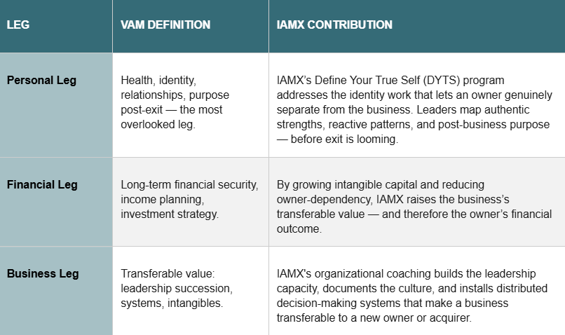 “VAM tells owners what to build. IAMX develops the leaders who can actually build it — and let go of it.”
